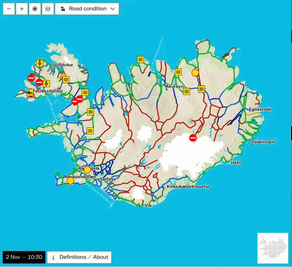 Podczas road tripu wokół wyspy prawie cały czas łatwo jest o zasięg LTE. To ważne, bo podczas wycieczki na Islandii pogoda potrafi się zmienić bardzo szybko. Porywiste wiatry to standard, a drzwi wyrwane z zawiasów samochodu to najczęstszy problem przy oddawaniu samochodu do wypożyczalni (uważaj zanim je otworzysz!). Zdarza się, że drogi są zamkniete przez niespodziewany opad śniegu – i to nawet w czerwcu. Internet przydaje się więc nie tylko nie tylko po to, by korzystać z nawigacji. Dobrze jest reguarnie monitorować stan dróg oraz sprawdzać pogodę w lokalnych serwisach: road.is i vedur.is.